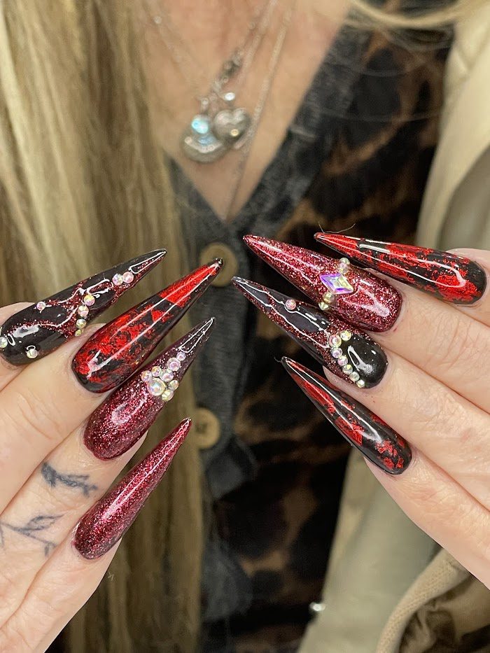 Went in not expecting much, but it was by far the nicest experience at a nail salon ive ever had. Im in love with my nails 🖤🩶 i will definitely be coming back for another set another time.